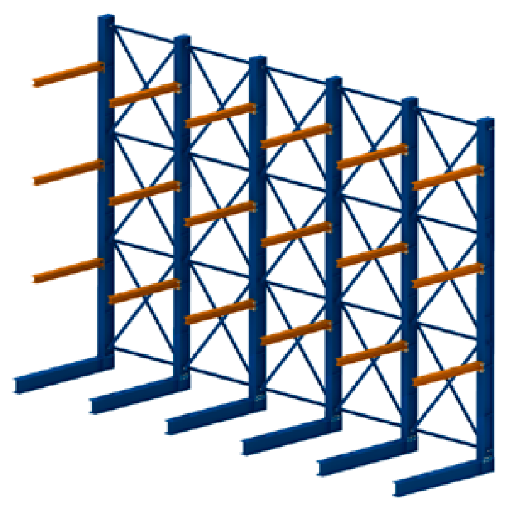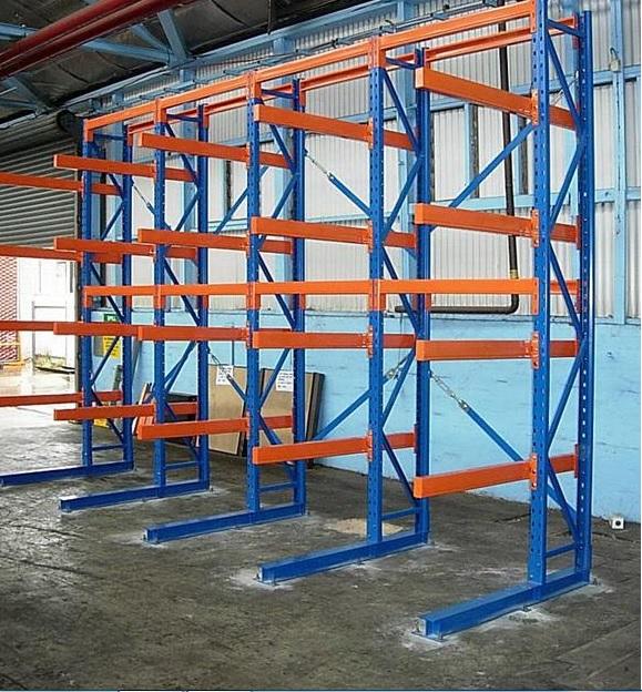 Cantilever racking, which is designed for the storage of long items such as beams and pipes.