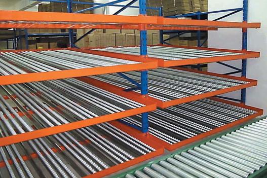 Live storage racking, which is a compact structure with a slight incline and roller conveyors to slide palletised products freely, where loaded pallets enter the higher end of the racks and move securely along the roller conveyors by the force of gravity, at a safe and controlled speed with the help of the braking and safety systems until they reach the other end and is ready to be removed.