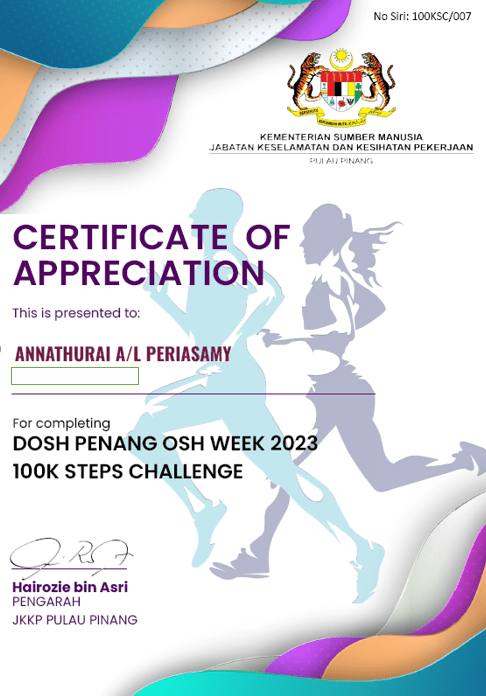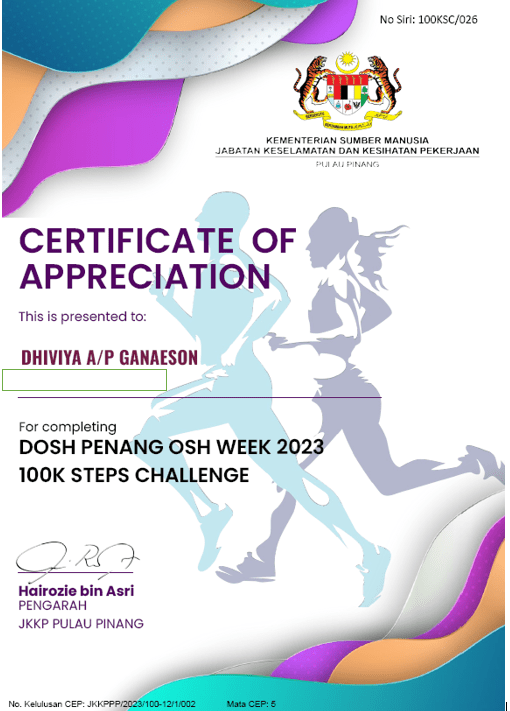 Participation of SHE Department in DOSH 100k Steps Challenge.